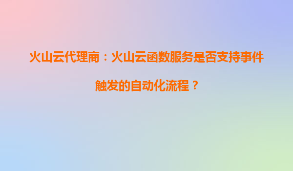 2025-08-30火山云代理商解析:火山云函数服务的事件触发自动化流程能力 一、火山云函数服务的核心特性 火山引擎的云函数(Serverless)服务提供无服务器计算能力,允许开发者无需管理基础设施即可运行代码。其核心优...