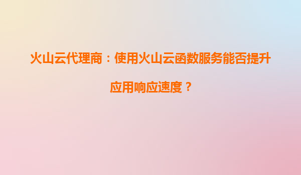 2025-08-28火山云代理商:使用火山云函数服务能否提升应用响应速度? 一、云函数服务的核心价值 在数字化转型的浪潮中,企业对应用响应速度的要求越来越高。火山引擎提供的火山云函...