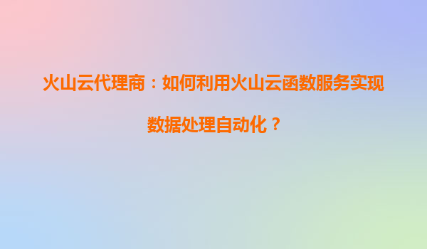 2025-08-29火山云代理商:如何利用火山云函数服务实现数据处理自动化? 火山云函数服务的核心优势 火山引擎的云函数服务(Serverless)是数据处理自动化的理想选择。其核心优势在于无需管理服务器基础设施,用户只需...