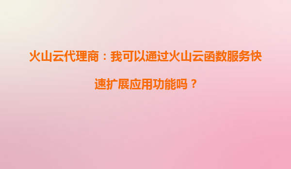 2025-08-29火山云代理商:我可以通过火山云函数服务快速扩展应用功能吗? 一、火山云函数服务的核心优势 火山引擎的云函数服务(Serverless)是一种无服务器计算服务,允许开发者无需管理底层基础...