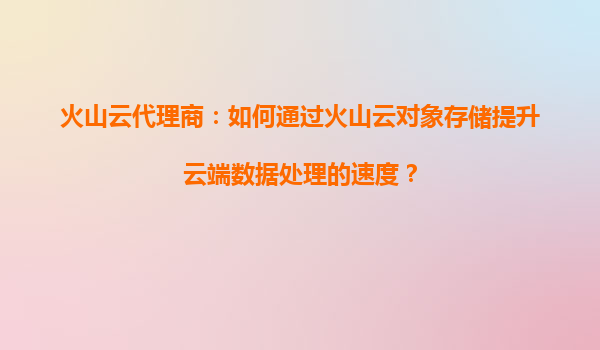 2025-08-28火山云代理商:如何通过火山云对象存储提升云端数据处理的速度? 在当今数据驱动的时代,企业对于云端数据处理的需求日益增长。如何高效、安全地存储和处理海量数据成为企业数字化转型的关键挑战之一。作为火...