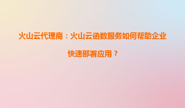 2025-08-28火山云代理商:火山云函数服务如何帮助企业快速部署应用? 一、火山云函数服务的核心优势 火山引擎的云函数服务(Serverless)是一种无需管理服务器即可运行代码的计算服务,其核心优势在于弹性伸...