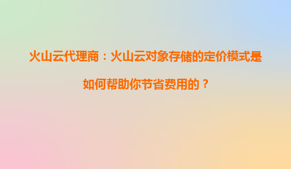 2025-08-26火山云代理商:火山云对象存储的定价模式如何帮你节省费用? 一、火山云对象存储的核心定价优势 火山引擎的对象存储服务(VolcanoCloudObjectStorage)通过...
