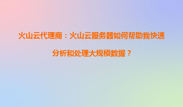 2025-08-24火山云代理商:火山云服务器如何帮助快速分析和处理大规模数据? 一、引言:大数据时代的挑战与机遇 在数字化时代,企业每天产生的数据量呈指数级增长。如何高...