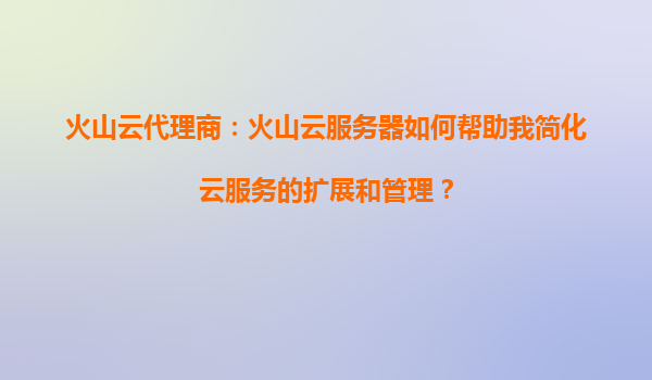 2025-08-24火山云代理商:火山云服务器如何帮助您简化云服务的扩展和管理? 引言 在数字化转型的浪潮中,企业对云服务的需求日益增长,但随之而来的扩展和管理复杂性也成...