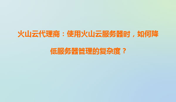 2025-08-24火山云代理商:如何降低火山云服务器管理复杂度 引言:企业上云的挑战与机遇 随着数字化转型加速,越来越多的企业选择将业务迁移至云端。火山云作为字节跳动旗...