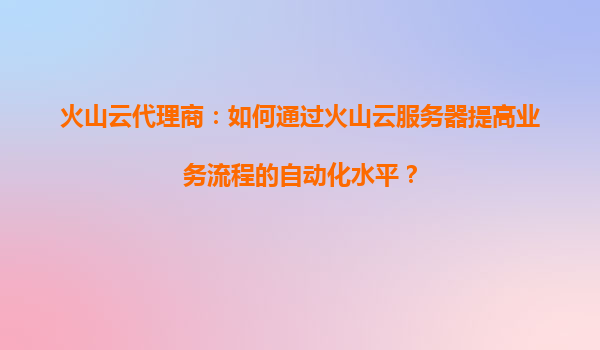 2025-08-24火山云代理商:如何通过火山云服务器提高业务流程的自动化水平? 一、引言:自动化是企业数字化转型的核心 在数字化浪潮下,业务流程自动化已成为企业提升效率、降低成本的关键手段。火山引擎...