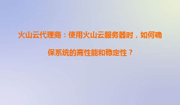 2025-08-23火山云代理商指南:如何确保系统高性能与稳定性 一、弹性计算资源按需分配 火山引擎提供弹性ECS实例,支持秒级扩容与缩容。通过智能调度算法,可根据业务负载动态调整CPU、内存配置,避免资源浪费或性能瓶颈。...