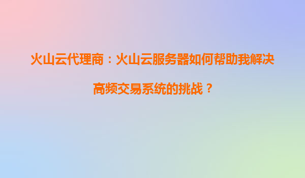 2025-08-23火山云服务器如何助力高频交易系统突破性能瓶颈 高频交易系统的核心挑战 高频交易系统对延迟、稳定性和扩展性有着近乎苛刻的要求。传统IT基础设施往往面临网络延迟高、硬件性能不足、突发流量应对乏力等问题,...