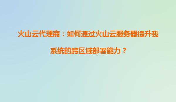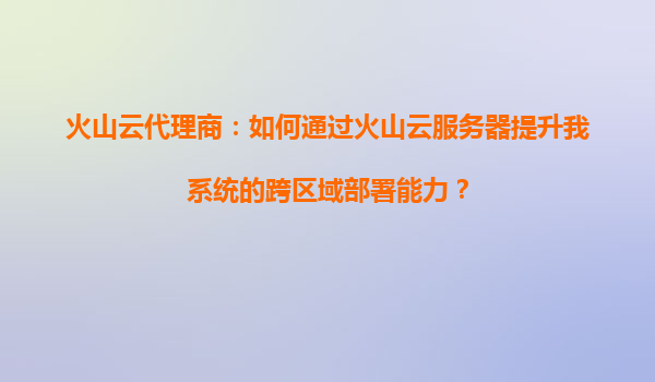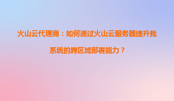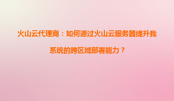 火山云代理商:如何通过火山云服务器提升系统跨区域部署能力 在当今数字化时代,企业业务的快速扩张对IT基础设施提出了更高的要求,尤其是跨区域部署能力成为许多企业亟需解决的问题。作为火山云代理商,我们深知火...