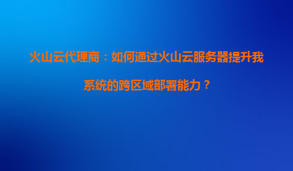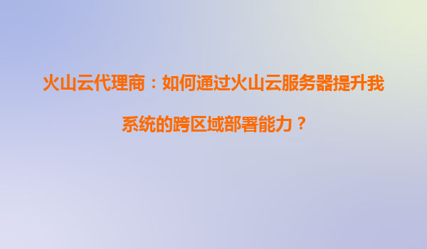 2025-08-24火山云代理商:如何通过火山云服务器提升系统跨区域部署能力 在当今数字化时代,企业业务的快速扩张对IT基础设施提出了更高的要求,尤其是跨区域部署能力成为许多企业亟需解决的问题。作为火山云代理商,我们深知火...