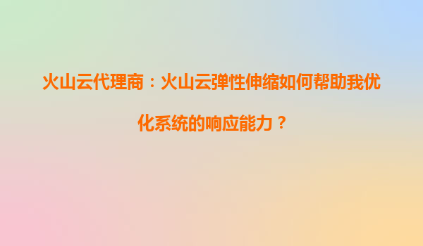 2025-08-21火山云代理商:火山云弹性伸缩如何帮助我优化系统的响应能力? 一、火山云弹性伸缩的核心价值与系统响应优化 火山云弹性伸缩(AutoScaling)是一种基于业务负载动态调整计算资源的服务,其核心价值在...