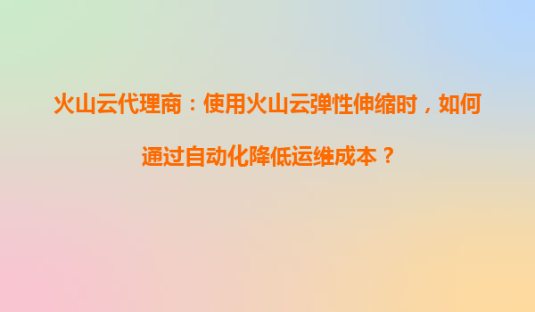 火山云代理商:使用火山云弹性伸缩如何通过自动化降低运维成本 在云计算时代,企业对于资源的弹性需求越来越高,如何高效、低成本地管理IT资源成为众多企业面临的挑战。火山引擎(VolcanoEngine)作为字节跳动...