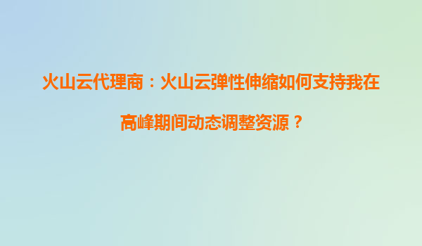2025-08-20火山云代理商:火山云弹性伸缩如何帮助我轻松管理跨多个环境的资源? 一、火山云弹性伸缩的核心优势 作为火山引擎的核心服务之一,火山云弹性伸缩(AutoScaling)通过智能化资源调度机制,为用户在多环境场景下提...
