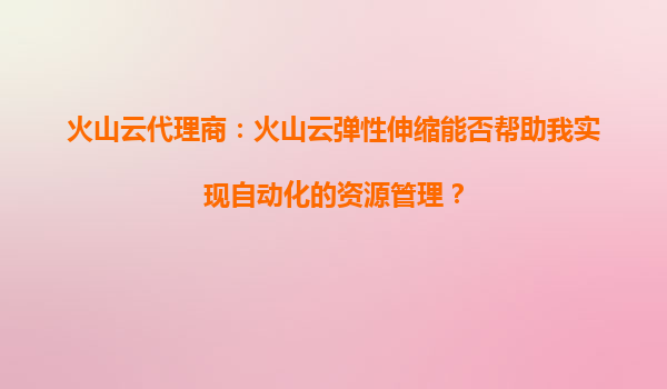 2025-08-19火山云代理商:火山云弹性伸缩能否帮助我实现自动化的资源管理? 1.什么是火山云弹性伸缩? 火山云弹性伸缩(AutoScaling)是火山引擎提供的一项智能化资源管理服务,能够根据业务负载...