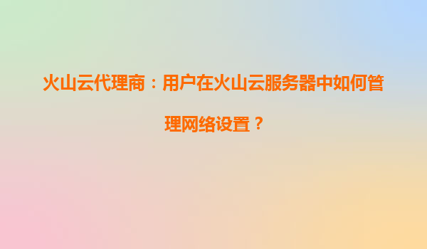 2025-08-18火山云代理商:用户在火山云服务器中如何管理网络设置? 一、火山引擎网络管理核心优势 火山引擎作为字节跳动旗下的云计算服务平台,其网络服务以高性能、高可用和灵活配置为核心优势。通过火山云服...