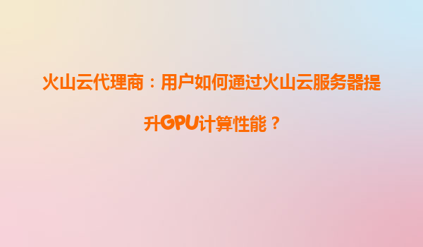 2025-08-17火山云代理商:用户如何通过火山云服务器提升GPU计算性能? 一、GPU计算的重要性与市场需求 随着人工智能、深度学习、大数据分析和科学计算的快速发展,对高性...
