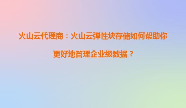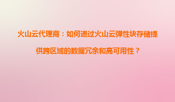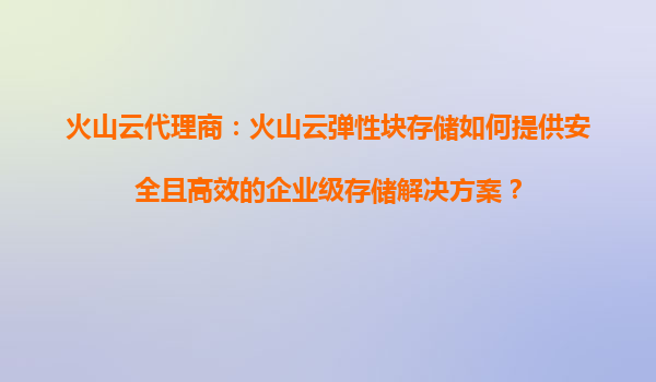 2025-08-16火山云代理商:火山云弹性块存储如何优化服务器负载,提升系统性能? 一、火山云弹性块存储的核心优势 火山云弹性块存储(EBS)作为火山引擎提供的核心服务之一,通过高性能、低延迟的分布式存储架构,为企业...
