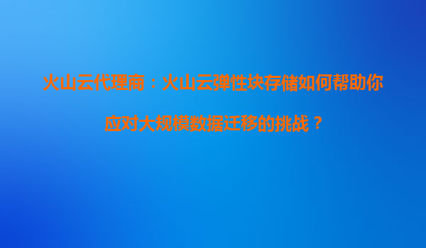 2025-08-15火山云代理商:火山云弹性块存储如何帮助你应对大规模数据迁移的挑战? 引言 在数字化时代,数据已成为企业的重要资产,而数据迁移则是许多企业在云计算转型、业务扩展或系统升级过程中不得不面对的挑...
