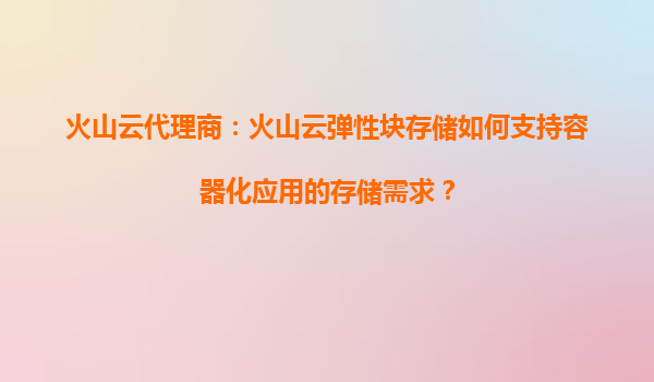 2025-08-15火山云代理商:火山云弹性块存储如何支持容器化应用的存储需求? 一、容器化应用的存储挑战与需求 随着容器化技术(如Kubernetes)的普及,企业对敏捷开发和微服务架构的需求激增。然而,容器本身的无状态...