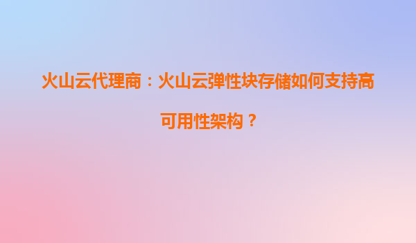 2025-08-15火山云代理商:火山云弹性块存储如何支持高可用性架构? 引言 在数字化转型的浪潮下,企业对数据存储的稳定性、灵活性和扩展性提出了更高的要求。尤其是对业务连续性有严格需求的企业,高...