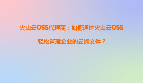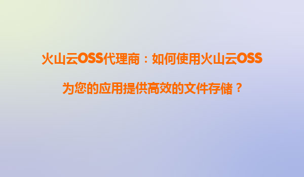 2025-08-12火山云OSS代理商:如何通过火山云OSS轻松管理企业的云端文件? 一、火山云OSS的核心优势 火山云OSS(对象存储服务)作为火山引擎旗下的核心产品之一,为企业提供了安全、稳定且高扩展性的云端文件存储...