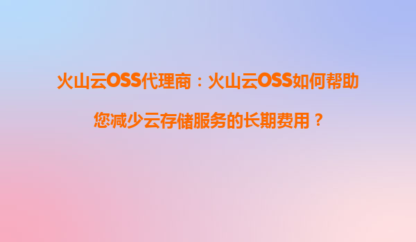 2025-08-12火山云OSS代理商:火山云OSS如何帮助您减少云存储服务的长期费用? 在当今数字化时代,云存储已成为企业数据管理的核心需求之一。然而,随着数据量的不断增长,云存储服务的长期费用问题逐渐凸显。作为火山引擎旗...