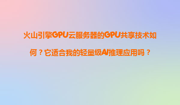 2025-11-08火山引擎GPU云服务器的GPU共享技术解析 1.GPU共享技术是什么? GPU共享技术是一种将单块物理GPU的计算资源智能分配给多个用户或任务的技术。不同于传统GPU独占模式,共享模式下多个轻量级应...