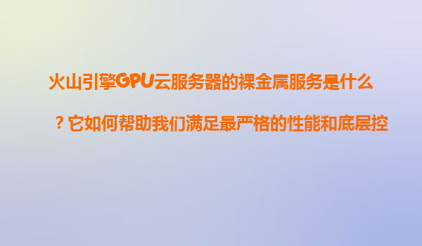 2025-11-08火山引擎GPU云服务器裸金属服务解析:极致性能与底层控制的终极解决方案 一、什么是火山引擎GPU云服务器的裸金属服务? 火山引擎GPU云服务器裸金属服务是一种基于物理服务器(而非虚拟化环境)提供的云计算...