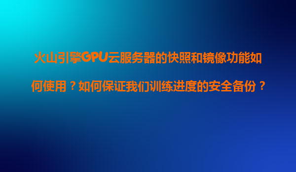 2025-11-08火山引擎GPU云服务器快照与镜像功能使用指南及训练进度备份方案 一、火山引擎GPU云服务器核心优势 火山引擎GPU云服务器基于字节跳动大规模AI训练场景打磨,提供以下核心能力: 高性能计算集群...