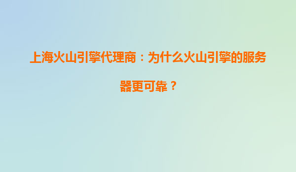 2025-06-23上海火山引擎代理商:为什么火山引擎的服务器更可靠? 在数字化转型浪潮中,企业对于云服务器的稳定性要求近乎苛刻。作为深耕云计算领域的专业服务商,上海火山引擎代理商在长期实践中见证了大...