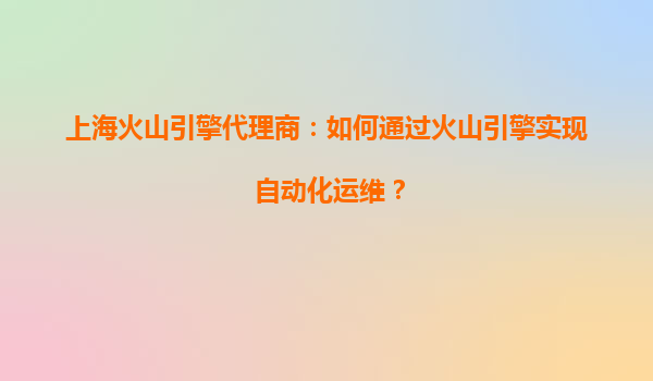 2025-06-20上海火山引擎代理商:如何通过火山引擎实现自动化运维? 自动化运维:数字化转型的核心引擎 在数字化转型浪潮中,上海企业面临运维复杂度指数级增长的挑战。传统人工运维模式已无法满足...