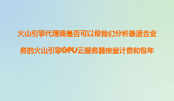 火山引擎代理商如何助力企业选择最优GPU云服务器计费模式 在数字化浪潮中,GPU云服务器已成为AI训练、高性能计算等业务的核心基础设施。火山引擎作为字节跳动旗下的云服务平台,提供多样化的GPU云服务器资源。...