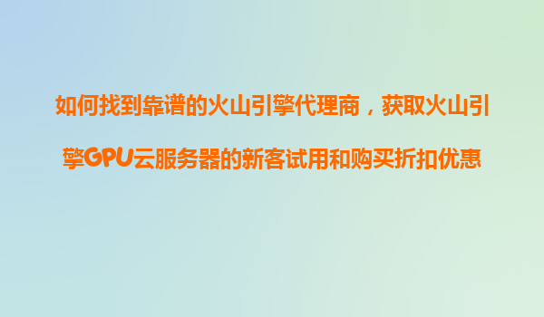 2025-11-06如何找到靠谱的火山引擎代理商,获取火山引擎GPU云服务器新客试用与折扣优惠 一、火山引擎的核心优势 火山引擎是字节跳动旗下的云计算服务平台,其GPU云服务器凭借高性能计算能力、...