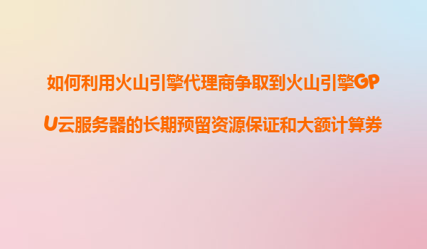 2025-11-06如何利用火山引擎代理商争取到火山引擎GPU云服务器的长期预留资源保证和大额计算券? 随着人工智能、大数据和深度学习的发展,企业对高性能GPU云服务器的需求日益增长。火山引擎作为字节跳动旗下的云...