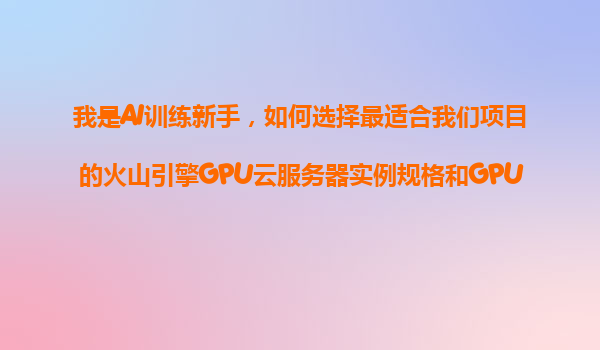 2025-11-06我是AI训练新手,如何选择最适合我们项目的火山引擎GPU云服务器实例规格和GPU配置? 一、了解火山引擎GPU云服务器的优势 作为AI训练新手,在开始选择GPU服务器实例前,首先要了解火山引擎GPU云服务器的核心优势: ...