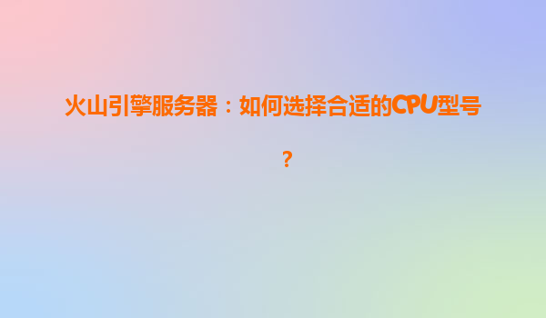 2025-04-18火山引擎服务器:如何选择合适的CPU型号? 一、CPU选择的核心考量因素 在选择火山引擎服务器的CPU型号时,需从业务需求出发,综合以下关键指标: 应用场景...