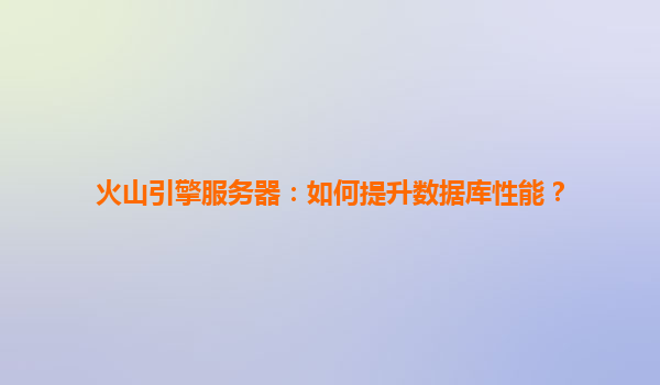 2025-04-15火山引擎服务器:如何提升数据库性能? 一、引言:数据库性能的重要性 在数字化业务高速发展的今天,数据库作为企业核心数据存储与处理的枢纽,其性能直接影响业务响应速度、用户体验及系统稳定性...