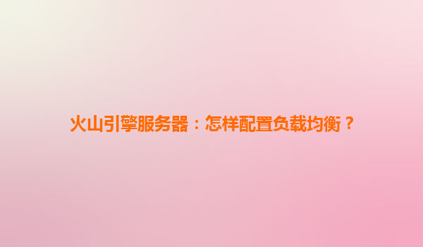2025-04-15火山引擎服务器:如何高效配置负载均衡? 一、负载均衡的核心价值 在云计算场景中,负载均衡(LoadBalancing)是保障业务高可用和高性能的核心技术。通过流量分发、故障自动切换、资源弹性扩展等功能...
