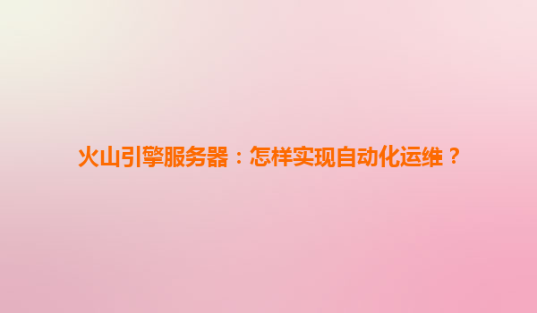 2025-04-15火山引擎服务器:如何实现自动化运维? 一、引言:自动化运维的必然趋势 在数字化转型浪潮下,企业IT运维面临资源规模膨胀、业务复杂度激增的双重挑战。火山引擎作为字节跳动旗下的云服务平台,通...