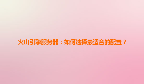 2025-04-13火山引擎服务器:如何选择最适合的配置? 一、理解业务需求是配置选择的核心 在选择火山引擎服务器配置前,需明确业务场景的核心需求。例如,Web应用需关注并发处理能力,大数据分析依赖高内存和存储性能,...