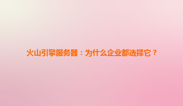 2025-04-13火山引擎服务器:为什么企业都选择它? 在数字化转型的浪潮中,企业对云计算服务的需求日益增长。火山引擎作为字节跳动旗下的企业级技术服务平台,凭借其强大的技术积累和生态优势,成为众多企业的...