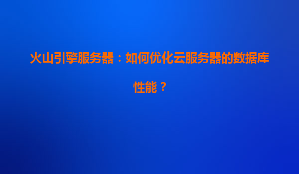 2025-04-13火山引擎服务器:如何优化云服务器的数据库性能? 一、数据库性能优化的核心挑战 在云计算场景中,数据库性能直接影响业务响应速度和用户体验。高并发访问、数据量激增、复杂查询负载以...
