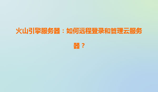 2025-04-13火山引擎云服务器远程登录与管理指南 火山引擎(VolcanoEngine)作为字节跳动旗下的云服务平台,提供高性能、高可用的云服务器(ECS)产品。本文将详细介绍如何远程登录和管理火山引擎云服务器,...
