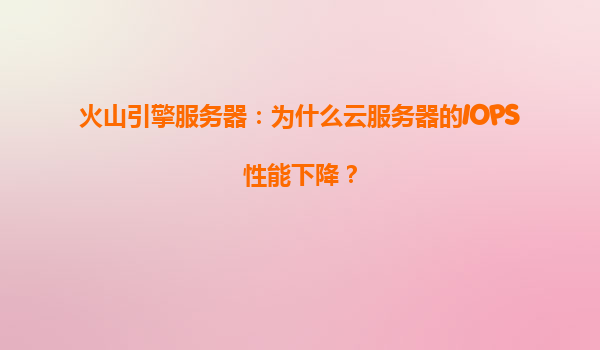 2025-04-12火山引擎服务器:为什么云服务器的IOPS性能下降? 一、IOPS性能的重要性与常见问题 在云计算领域,IOPS(每秒输入输出操作次数)是衡量存储性能的核心指标,直接影响数据库、实时分析和高并发业务...