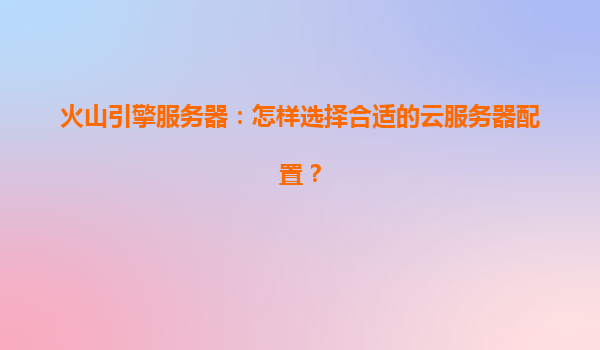 2025-04-13火山引擎服务器:怎样选择合适的云服务器配置? 一、火山引擎的核心优势 火山引擎作为字节跳动旗下的云计算服务品牌,依托全球数据中心和自研技术,提供高性能、高可靠的云服务器解决方案。其核心...