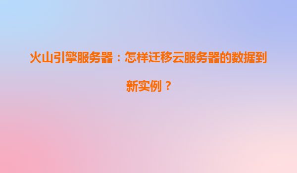 2025-04-09火山引擎服务器:如何高效迁移云服务器数据到新实例? 一、云服务器迁移的核心需求与挑战 在业务扩展或架构优化场景中,云服务器数据迁移需要满足三个核心需求:业务连续性保障、数据完整性验证以及迁...