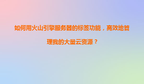 2025-11-06火山引擎标签功能:云资源高效管理的利器 一、标签功能的核心价值 火山引擎的标签(Tag)功能是为云资源管理量身定制的分类工具,它通过键值对形式为ECS实例、存储、数据库等资源打上标识。相比于传统的手...