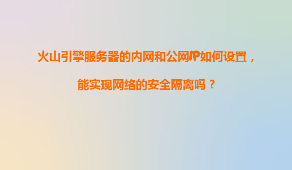 2025-11-06火山引擎服务器内网与公网IP的安全隔离配置策略 一、火山引擎网络架构的核心优势 火山引擎通过软件定义网络(SDN)技术构建了灵活高效的网络服务体系。其VPC(专有网络)服务支持用户自定义私网网段、路由...
