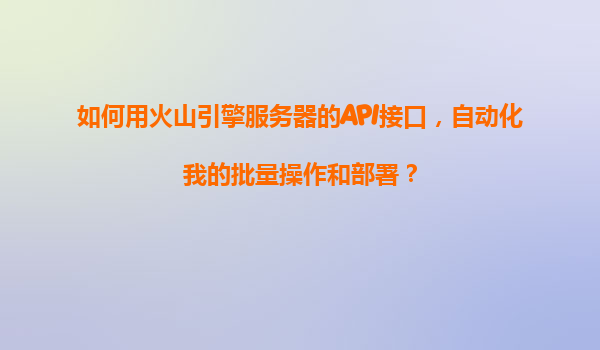 2025-11-05如何利用火山引擎服务器API接口实现批量操作与部署自动化 一、火山引擎API的核心优势 火山引擎作为字节跳动旗下的云计算服务平台,其API接口设计具有以下显著优势: ...